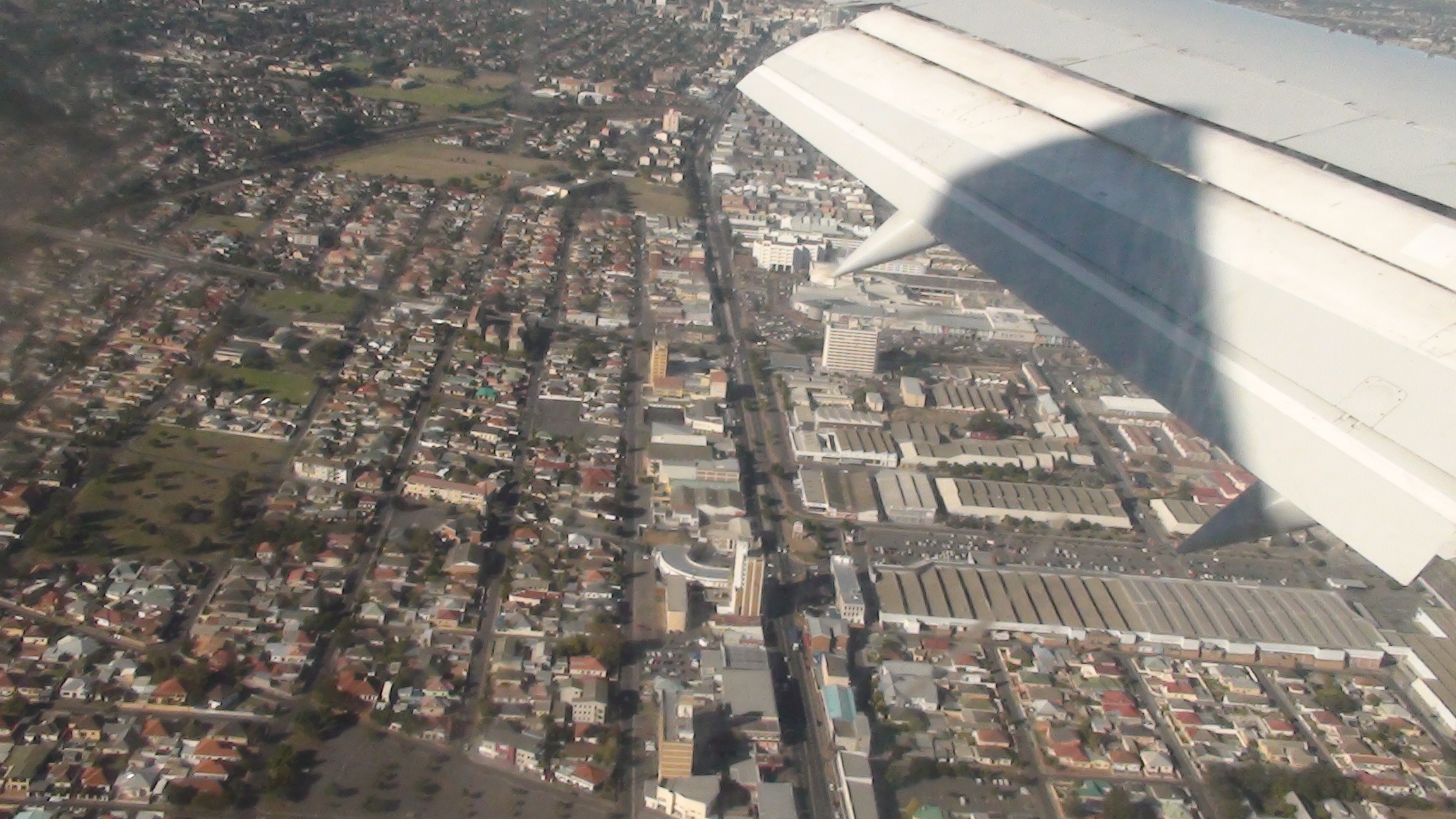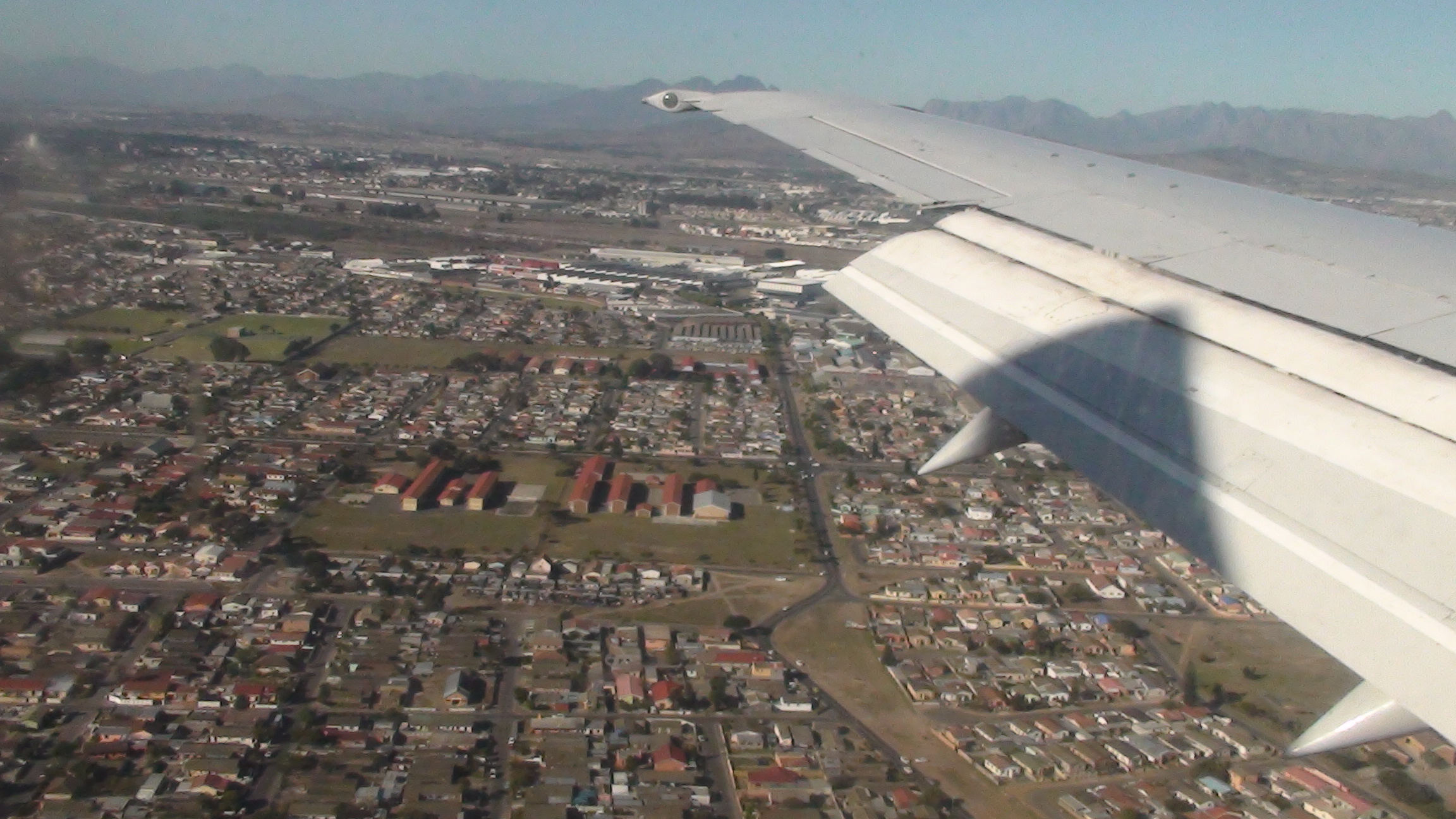 Here's the view of Parow, with the Sanlam Centre tucked under the wing, and Voortrekker Road cutting through the middle of the photo.